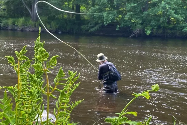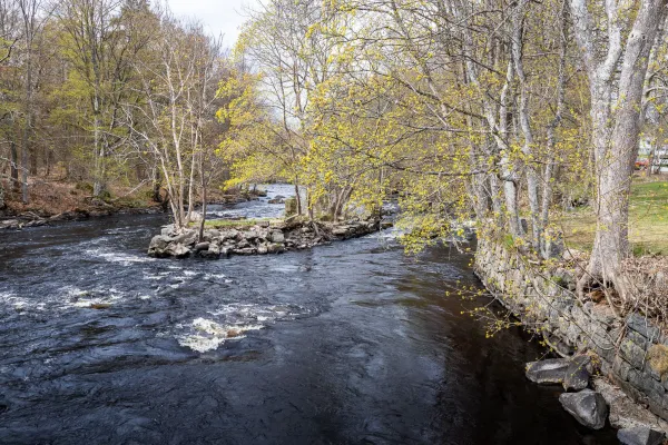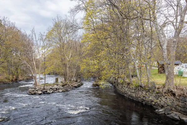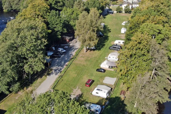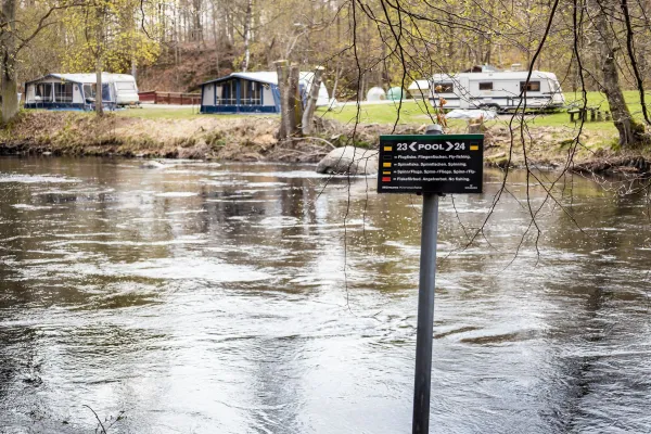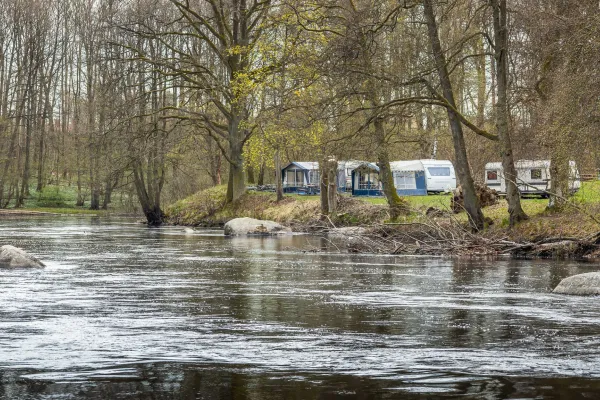 Vackert beläget precis vid Mörrumsåns strand ligger Kronolaxfiskets två lägerplatser för uppställning av husvagn, husbil eller tält.