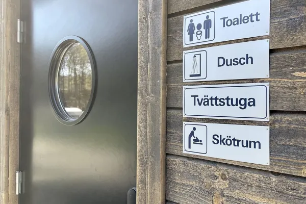 På lägerplatsen finns en enklare bajamaja, men tillgång till servicehuset på Åkrokens camping (ca 2 km norrut) ingår.