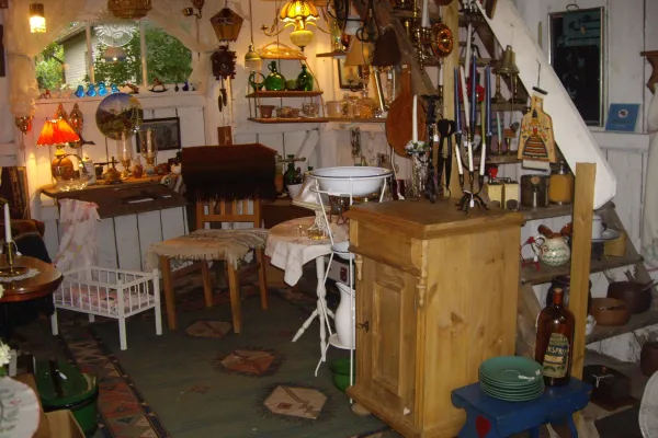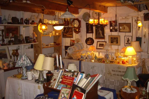 Här finns det både glas och porslin - gammalt och nött - kuriosa, textiler, möbler, lampor och tavlor.Här kan du hitta allmoge med patina som andas en historia. Ta dig en titt och fråga gärna ifall du inte hittar det du söker. Det kommer in nya, spännande saker nästan dagligen.