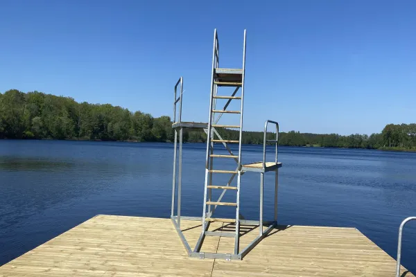 Eftersom Olofströms kommun ansvarar för badplatsen finns livbojor för livräddning på plats.