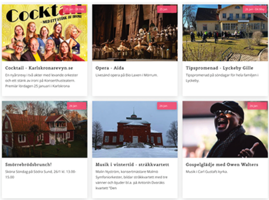 Vi tar del av målgruppsanalyser, följer trender och sökmönster och anpassar webb och innehåll utifrån detta. Nu ser vi ett stort intresse och sök på alla former av boende, vandring och aktiviteter. Vi samlar och lyfter Blekinges alla evenemang, och extra mycket i samband med högtider och lov.