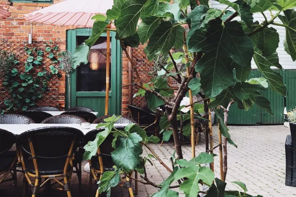 Slink in på bakgården, ta en kaffe, en bit mat eller något att dricka.Vardagar serveras dagens lunch. Man kan även beställa från vår à la carte-meny.