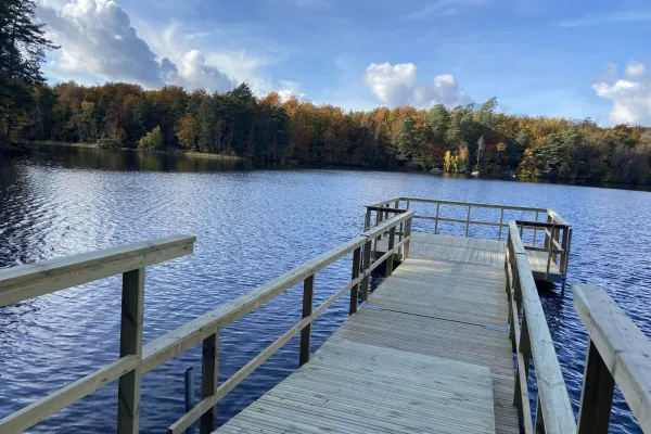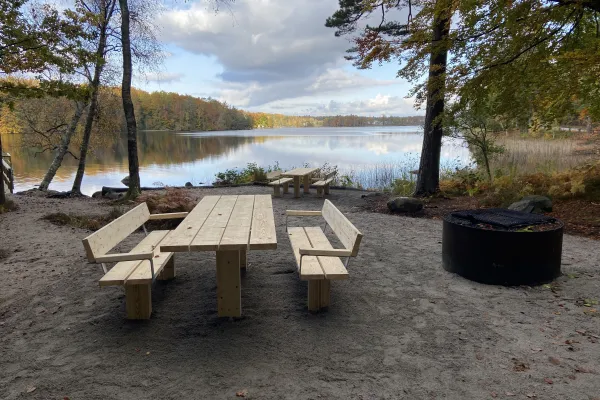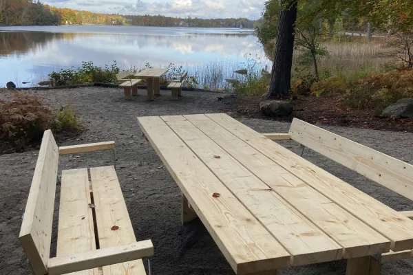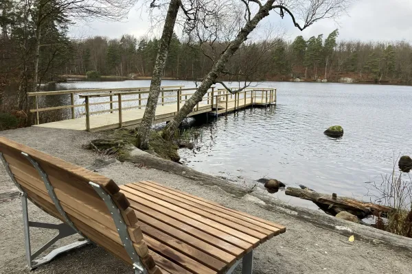 Vid rastplats Blåsevik finns en grill, sittmöjligheter och en tillgänglighetsanpassad fiskebrygga.