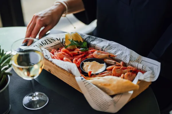 Restaurang som serverar fiskrätter och skaldjur i genuin miljö precis vid Saltö sund.