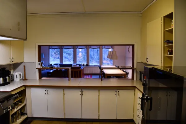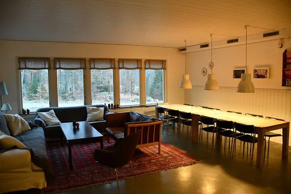 9 rum, upp till 20 personer, professionellt kök, olika vardagsrum och rekreationsrum,