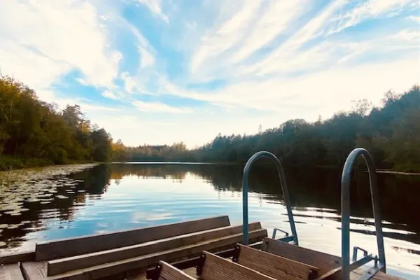 Rymligt boende i ett avskilt läge bland fyra naturreservat, vid badsjön "Moagylet", för upp till 20 personer. Njut av lugnet och den rena luften runt Boafall Lodge – inbäddat i en fridfull bokskog.En semester på Boafall är en fantastisk upplevelse för avkopplingssökande, friluftsentusiaster,