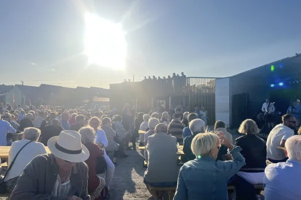 Restaurang med takterass vid brofästet i Sölvesborg.
