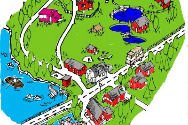 Övernattning i gemytliga stugor eller lägenhet, ställplatser för tält och husvagnar