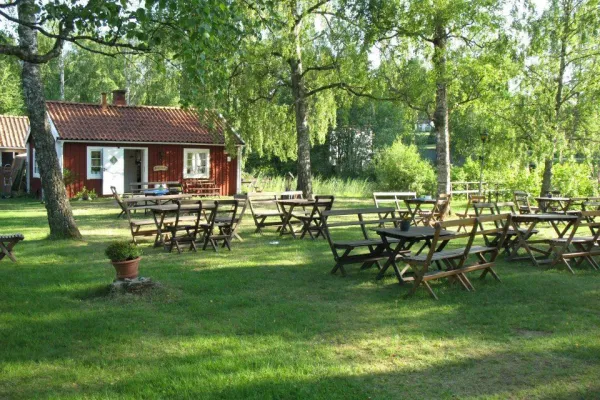 Mysigt café som säljer hembakade kakor, våfflor, glass, smörgåsar på Hembygdsön i Holmsjö.