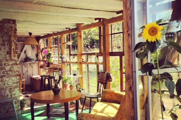 Hier werden saisonale, verfügbare und schmackhafte Speisen serviert. Köstliche Naturweine, Bier, Waffeln und Kaffee.Hier finden Sie auch Kunsthandwerk und Kunsthandwerk aller Art. Musik und Veranstaltungen stehen immer auf dem Programm.