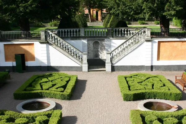 Der kleine Barockgarten vor dem Hauptegebäude des Blekinge museums wurde 1978 mit einer Terrasse, von beschnittenen Buchsbäumen eingefriedet, rekonstruiert, und auch der Terassengarten, den man über eine monumentale Doppeltreppe erreicht, wurde hergerichtet.