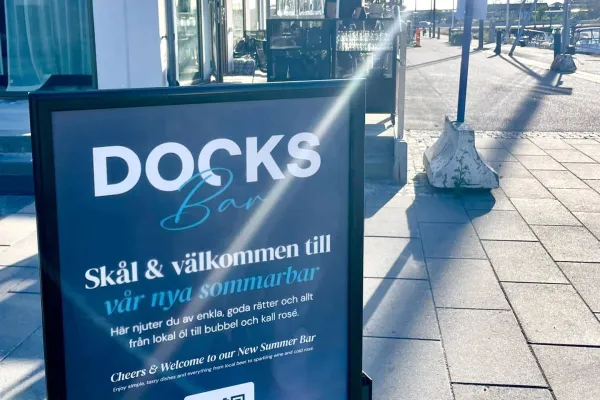 The menu includes lighter dishes such as pinsa, Caesar salad and charcuterie tray. At Docks bar, the focus is on the drinks. Wines, cocktails and locally produced beer are some examples of what you can order at the bar.