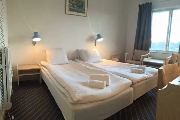 The hotel is situated in the middle of Mörrum close to the park, the railway station and the river Mörrum. With its central location, the hotel becomes a natural gathering place for all kinds of events and meetings.Hotel Walhalla has a total of 26 rooms - 7 double rooms, 12 single rooms and 2 family rooms. In the annex we have 5 double rooms with shared kitchen for those who would like to cook their own meals. Total 45-50 beds.