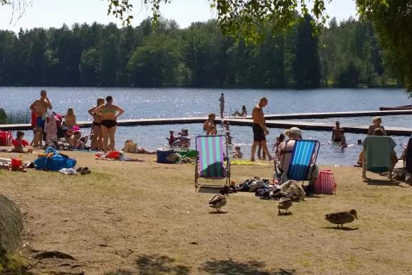 By lake Långasjön, located north of Asarum, there's a leisure area with cottage rental and camping site. Lake Långasjön itself is a popular swimming area with nice water temperature. If you want to go out on the lake, you can rent a rowing boat, canoe, kayak or a paddle board. Also a cafe and miniature golf course by the camping reception.Asarum's sports field is close to Långasjön and has soccer fields, tennis courts and lighted jogging trails.