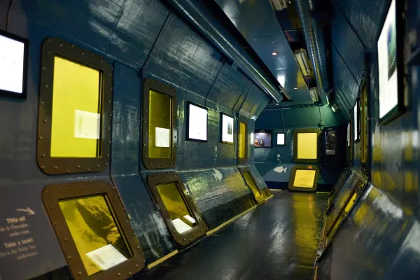 Das traditionsreiche Marinemuseum wurde bereits 1752 auf Initiative des Königs Adolf Fredrik als Modellkammer gegründet. Seitdem gilt der Auftrag des Museums, Gegenstände der schwedischen Marine zu sammeln und zu bewahren, mit der Absicht, deren Tätigkeit und Entwicklung zu dokumentieren.Die Sammlungen sind in vielerlei Hinsicht einmalig und können seit Juni 1997 im neuen Marinemuseum auf der Insel Stumholmen in der Nähe des Stadtzentrums besichtigt werden. Dieser Platz bietet sich an, da diese Insel von einem besonderen maritimen Flair geprägt ist und annähernd 300 Jahre lang ein wichtiger Teil des Marinestützpunktes Karlskrona und zudem der Haupthafen der Schwedischen Flotte war. Erleben Sie das traditionsreiche Kulturerbe der schwedischen Marine aus nächster Nähe! Folgen Sie dem Aufbau der Flotte und der Entwicklung Schwedens zu einer der europäischen Grossmächte im 17. Jahrhundert. Es werden die technologischen Fortschritte im Schiffbau gezeigt, indem die Schiffe der in Karlskrona tätigen Schiffbauerfamilie Sheldon und die von Frederik af Chapman vorgestellt werden. Durch die Fenster eines Unterwasser-Tunnels unter dem Museum kann das Wrack eines Schiffes aus dem 18. Jahrhundert besichtigt werden. So erhält man eine Vorstellung von den schwierigen Verhältnissen, mit denen die Unterwasserarchäologie zu tun hat. Unter der Rubrik Seeschlacht wird die Waffen- und Artillerieentwicklung bis Mitte des 19. Jahrhundert behandelt. Mit Modellen illustrieren wir auch das taktische Auftreten der Flotte während der Seeschlacht von Hogland 1788 und bei Svensksund 1790. Die größte Sehenswürdigkeit, aus der Sicht vieler, stellt die Rekonstruktion eines Kanonendecks des Linienschiffes "Dristigheten" in natürlicher Grösse. Dargestellt ist eine Situation während einer Seeschlacht, die die schlechten Bedingungen für die Soldaten unter Deck verdeutlichen soll.