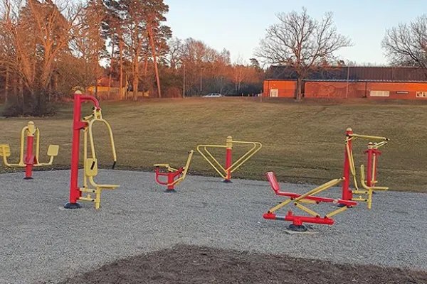 The outdoor gym at Västra Mark is adjacent to the running tracks. The outdoor gym is built of wood and consists of seven stations that give the body a versatile workout.