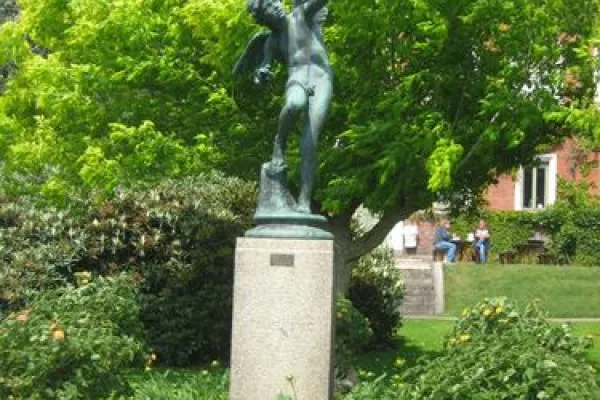 The bronze statue "Tjusningen" is a winged, cupid-like male figure by the artist Per Hasselberg about 1880 and "Kockumska Monument" is done by Ivar Johansson.