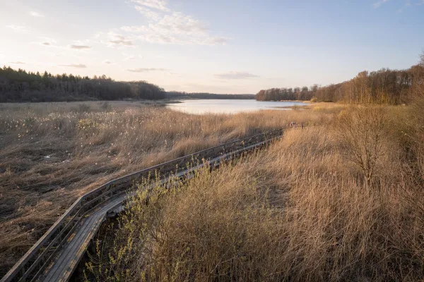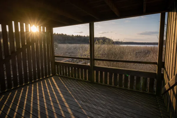 Der Feuchtgebietspfad von Siesjö führt über Stege ins Schilf. Vom Vogelbeobachtungsturm aus haben Sie einen schönen Blick auf die Vogelwelt und den See, der in eine Mosaiklandschaft aus Auwäldern, Laubwäldern und offenen Weiden eingebettet ist.
