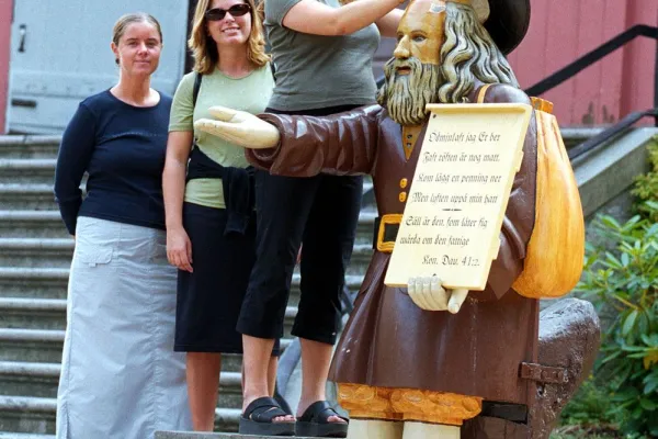 Die Armenbüchse der Kirche ist das erste, was ein Besucher bei Amiralitetskyrkan begrüßt. Er ist in der Tracht von einem Matrosen in der Mitte des Jahr 1700 getragen gekleidet.Er weltberühmt geworden durch Selma Lagerlöf "Nils wunderbare Reise durch Schweden", wenn er Nils gerettet vom König Karl XI Wut.