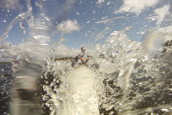 A surfski can be likened to a kayak that is open, without cover , usually much longer than a traditional kayak and designed to go as best in big waves . Really fun it will be in flow of waves from the back.When paddling surfski at lower water temperatures you have to wear wet suit, dry suit on or tights and a wetshirt . The paddle is usually wing paddle, because it gives a better cut in the water , and is not affected so much by the wind when paddling.