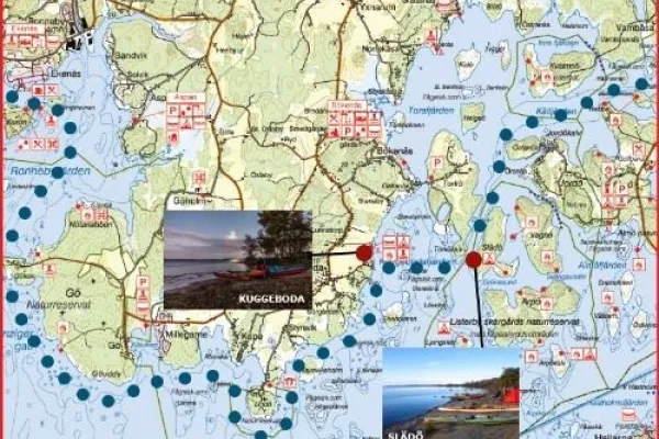 Vi föreslår att ni spenderar natten vid Kuggeboda badplats eller på Slädö.
