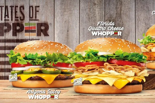 Restaurang som säljer hamburgare, pommes frites, olika sandwiches, läskedrycker och desserter.