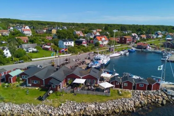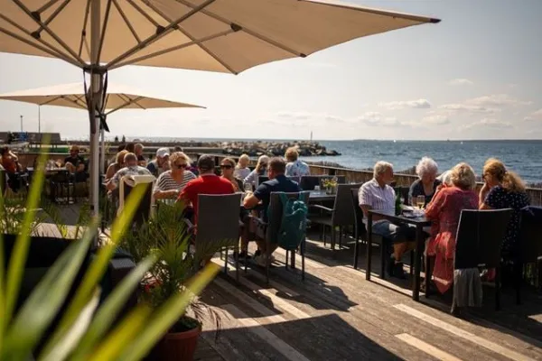 Mysig restaurang belägen i Hanö hamn med utsikt över Hanöbukten.
