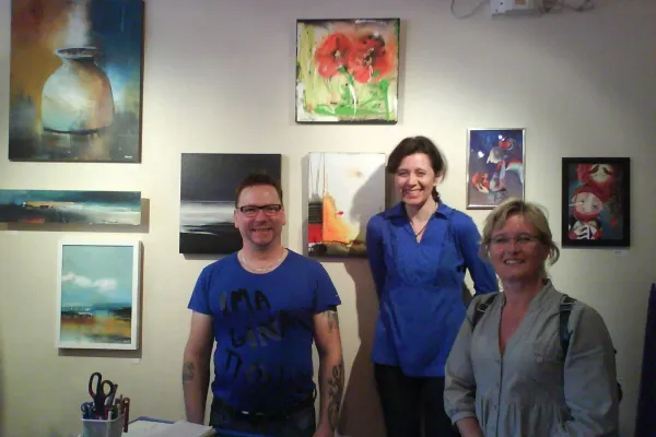 Ett litet mini-galleri (en halv konstvägg) på Mullbärsträdet & Bokrutan där konstnärer ställer ut månadsvis.