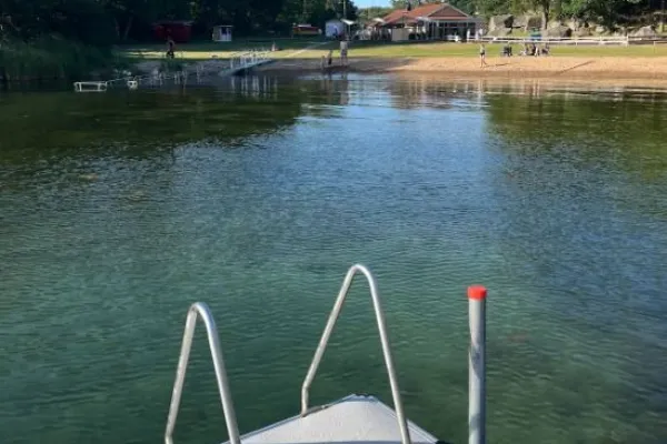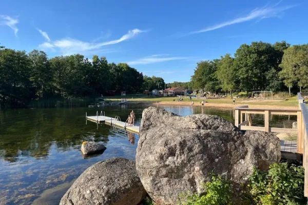 Vi har en populär badplats med sandstrand. Badplatsen har en handikappsanpassad brygga.