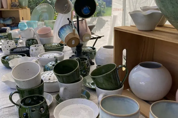 Keramik, garn, kurser i drejning samt andra småskaligt tillverkade produkter.