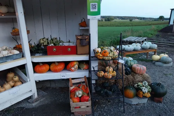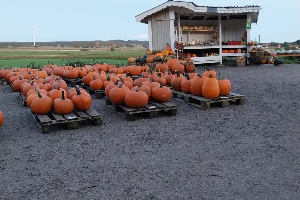 Pumpaboden säljer prydnadspumpor i olika färger och former. Har även flera sorters matpumpor och givetvis halloweenpumpor.Öppet från slutet av augusti till början av november. Självbetjäning.