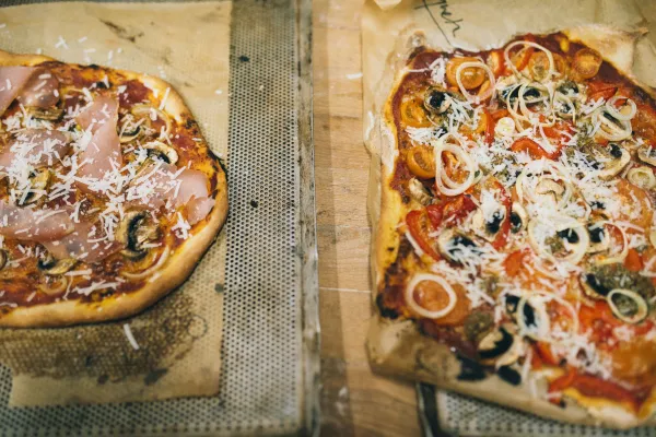 Vedugnsbageriet har öppet beroende på säsong och vid förbokningar och då kan du njuta av vedugnsbakade pizzor smaksatt med basilika, parmaskinka och mozzarella, goda surdegsbröd, saftiga bullar i en mysig atmosfär.