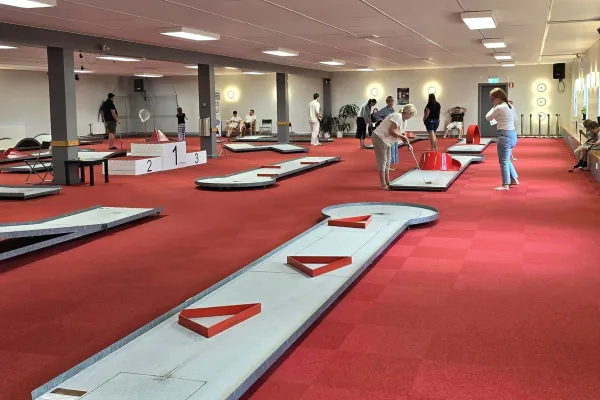 Spela minigolf på fina inomhusbanor i Asarum under sportlovet.