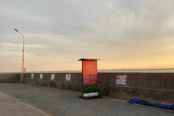 Utställningen på Ekenabbens pir, berättar historien om de nu identifierade vraken, som är sänkta i Djupasund, information på svenska och engelska.