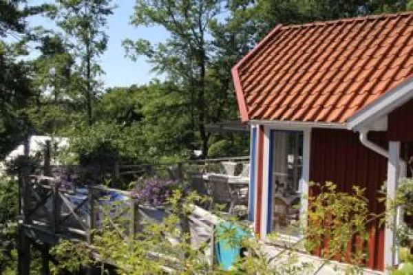 Himlahuset: Bedroom with two 90 cm beds, wardrobes and tv, and a loft with a 120 cm bed. NOTE! The loft has no headroom, steep ladder. Fully equipped kitchen, shower and toilet. Large wooden deck of 50 sqm with garden furniture. Änglahuset: Two rooms, one 120 cm bed. The other with sofa bed for 2 people. Basic kitchenette with hot and cold water, hot plate, microwave, coffee maker, kettle, a small refrigerator. Outhouse with so-called separett. Ability to shower in the adjacent building. It is possible to rent a rowboat. Possibility to bathe in the hot tub. You can also book different spa treatments. The houses are not disabled. The plot is hilly. Pets are not allowed. Price: Prices 2012: November to March, 240 SEK / person from April to May, 280 SEK / person from June to August, 300 SEK / person Sept. - Oct., 280 SEK / person first night will be 50 per bed sheets and towels, which we provide. Final cleaning included.Attributes