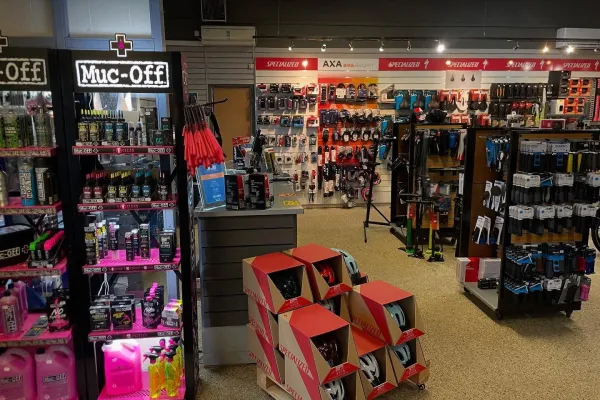 Repairing, selling and accessories. There's always 150-200 bikes in the store.