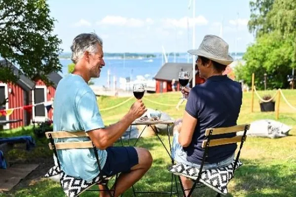In the morning you get to enjoy a lovely breakfast basket on your terrace overlooking the sea. You can spend the day along one of the hiking trails on the island and look at the beautiful "Fish Cuckoo Oak" from the 14th century that previously served as a landmark for seafarers. Today's lunch is served in Bistro Frank's Kabyss, located where the archipelago boat docks, or as a takeaway.