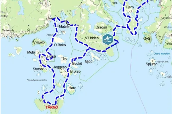 The idyllic island Tjärö, about 3 km from Järnavik, is well worth a visit and the whole island is a nature reserve with a rich flora and fauna. The island also offers hiking trails, a swimming area, viewpoints, restaurant, cafe etc. If you want to challenge yourself, take a swim by jumping from the 12 m high cliff Tjäröklippan on the west side of the island. You then continue to the southwest and pass the cape Allböle which can be wind-exposed. Depending on the weather and wind, it is also possible to pass on land via a ramp in a more protected position. Now the Hällaryd archipelago opens and with regard to the wind, you can navigate between the islands according to your wishes.