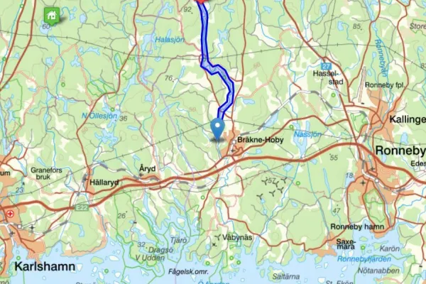 Driving direction from Bräkne-Hoby: