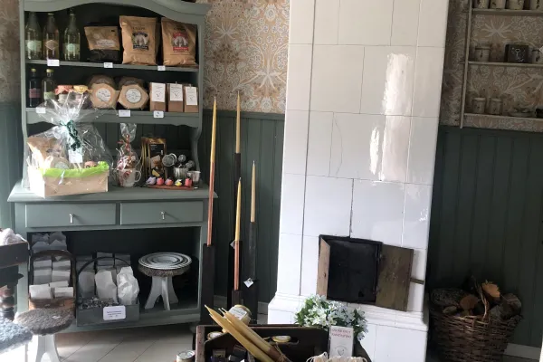 In this farm shop you will find home-made crafts, must, juice, marmalade and honey in several flavors. Coffee, tea, locally made cakes and sometimes even eggs from their own chickens and quails. Gift items, hand-cast candles in both wax and candle and nice gift boxes for give-aways.Also take the opportunity to say hello to the chickens, birds and rabbits or play for a while by the stream.