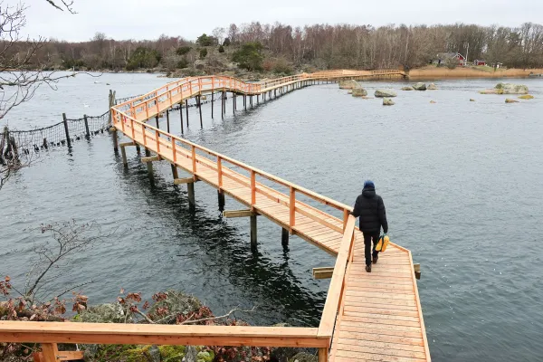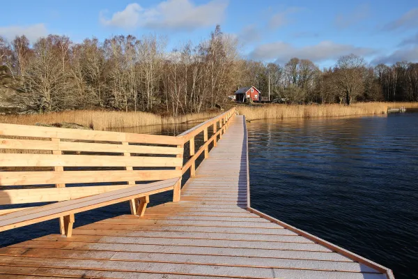 This beautiful coastal trail is located near the Eriksberg Eriksberg Wildlife & Nature Park. Since the trail runs along the fence to the wildlife park, with a little luck you can also see the animals there. The trail has orange markings on posts and trees. There are lots of nice views out over the water along the coast."Eriksbergsleden" is an amalgamation of the former Kohageleden, which began at the entrance to Eriksberg in the northeast (N 56°11’26” E 15°00’00”) and Allböleleden, which started from Björnahemmet in the southwest (N 56°10’15” E 14°59’03”). The two trails have been linked by a pair of spectacular bridges that connect Dragsö with the mainland.