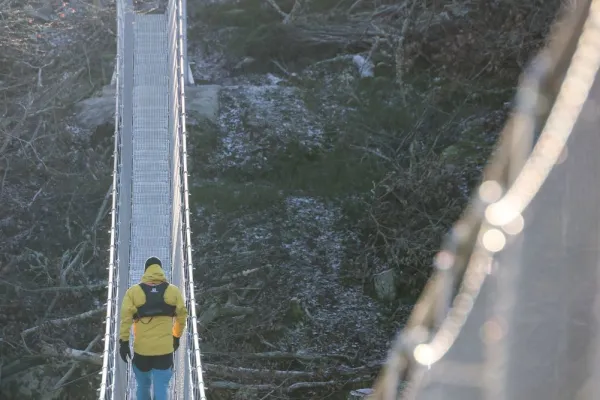 A 100-meter-long and technically advanced suspension bridge and a wooden footbridge about 185 meters long.