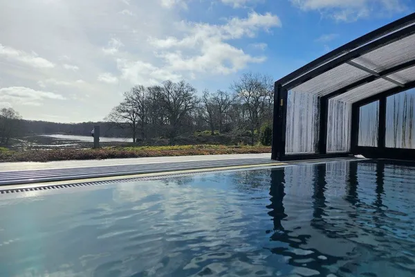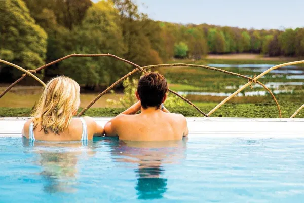 - Relaxation area with heated outdoor pool overlooking the safari park