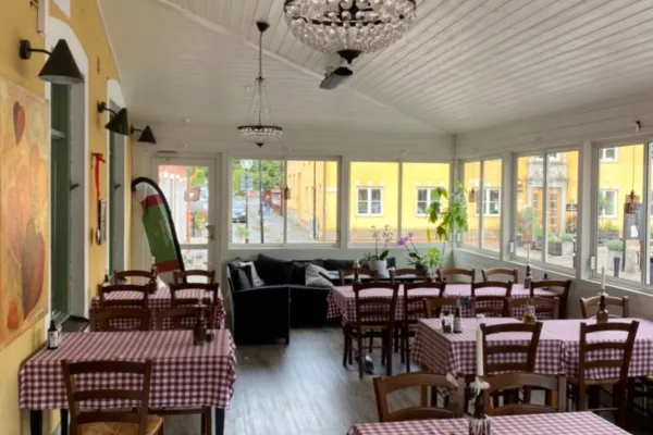 A cozy neighborhood restaurant located at Stortorget in Sölvesborg.