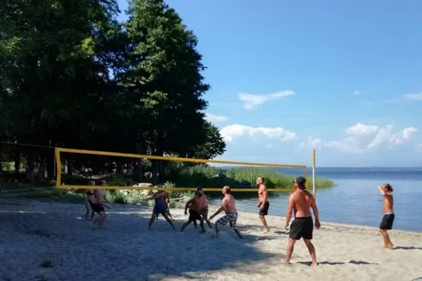 Service house with a large kitchen, meeting room and dining room. Three large family rooms with toilets, sinks, showers, changing tables etc. There are also two large cottages to rent