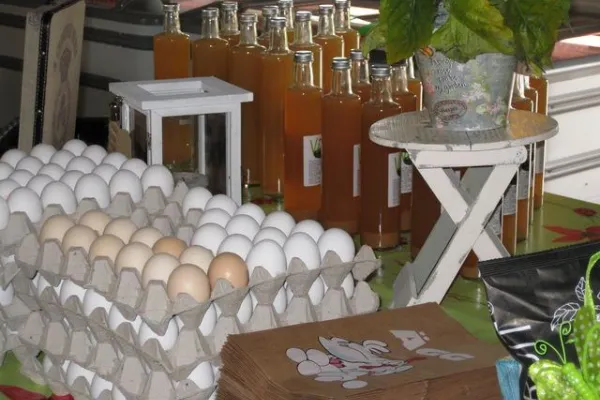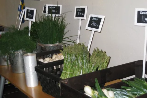 Here you can buy your own and locally produced vegetables and berries. Homemade juice, jam and marmalade as well as chicken raised on the farm.