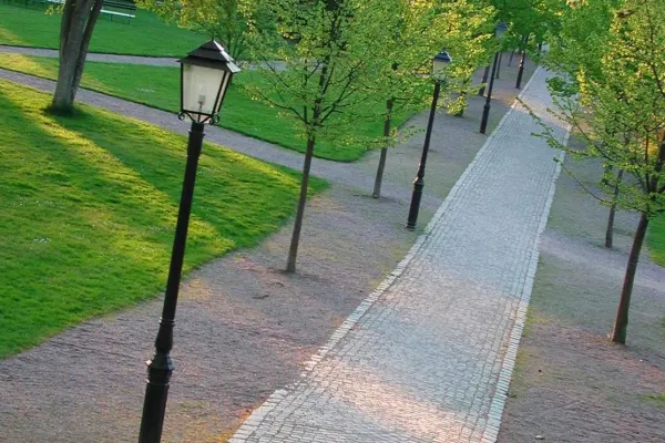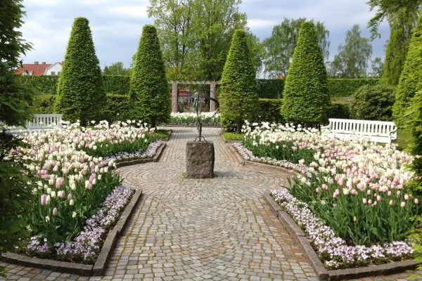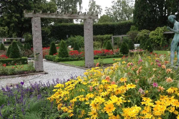Rosengården was established in the 1920s as an entrance to the school Väggaskolan. Here you will find different kinds of flowers, vegetation, statues and fountains. There is a rosarium with a lot of roses, spring and summer flowers, woodland plantation and unusual bushes and trees. The large outdoor scene Snäckan is used extensively during the year for different types of events. Karlshamn's Midsummer celebration is always held in the park.