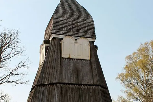 Since the parish had been without a church for six years, since the old one burned down on 19 May 1940. The church's finest inventory is medieval altarpiece from about the year 1480 and is the oldest of Blekinge. The middle part consists of a representation of the Virgin Mary's heavenly coronation. Side by side is God the Father as heavenly King and Mary as Queen of Heaven both with crown on his head. Next to Mary is Christ without crown but with glory crown of the head, the wreath that never fades. The pulpit is of oak with symbols of God's Word through the ages. The baptismal font is in granite from Backaryd and came 1945th The bell tower of the old church was saved by the fire and have moved out of the cemetery.