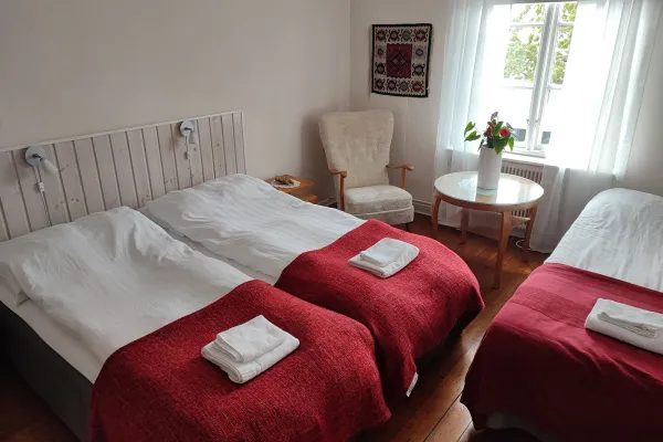 Welcome to the “small hotel with the big heart”. Just north of Karlshamn in Asarum, in the middle of Sweden’s garden, is Solsta Towers. Since 1932, the hotel has offered guests a place to stay. The rooms are renovated in retro style. You live environmentally conscious and climate smart. Four double rooms and four single rooms, includes bed linen. Shared fresh showers with toilets are located just outside the rooms. Prices are with or without breakfast.The hotel has a common living room with a simple kitchen, where you can eat a packed lunch or just enjoy the company. The hotel offers “self-service bar” with drinks for those who want something enjoyable during their stay.