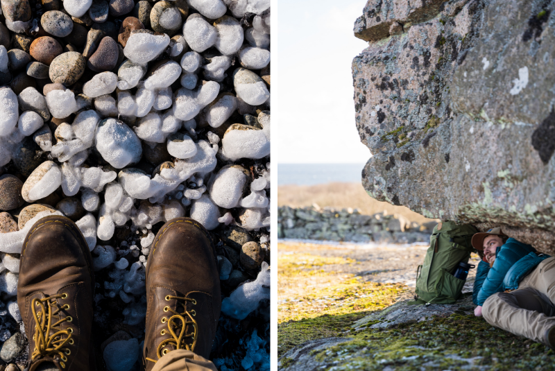 A day tour through Spraglehall with lunch over an open fire. A great activity to do on a cold winter's day like this! Mikko (@muchomallo) took us out and guided us through the nature reserve, over the big boulders, along the coast and the package ice which gave a bit of an Antarctic feel.